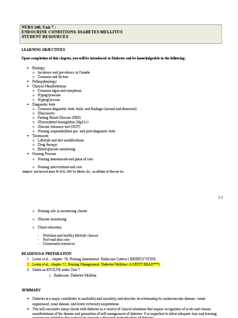 Unit 7 Diabetes Student Resources Diabetes Mellitus Type 1