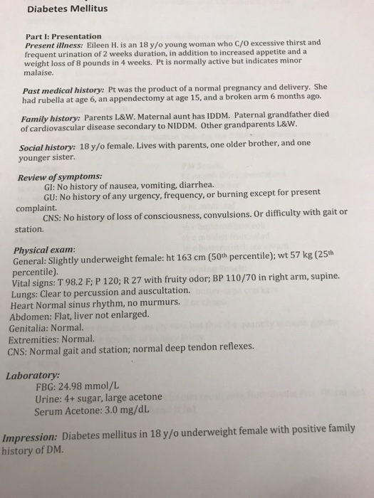 Solved Diabetes Mellitus Part I Presentation Present Ill