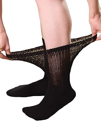 Diabetic Crew Socks Size 10 13 Breathable Cotton Socks Loose Fitting Comfortable Sock Non