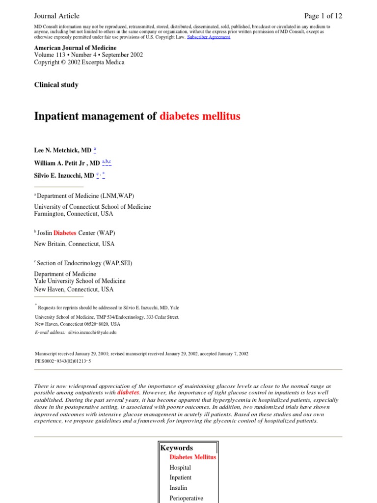Inpatient Management Of Diabetes Mellitus Pdf Dm Ii