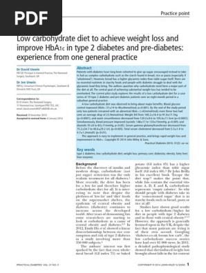 Low Carb Diet For Weight Loss And Diabetes Unwin 2014 Pdf