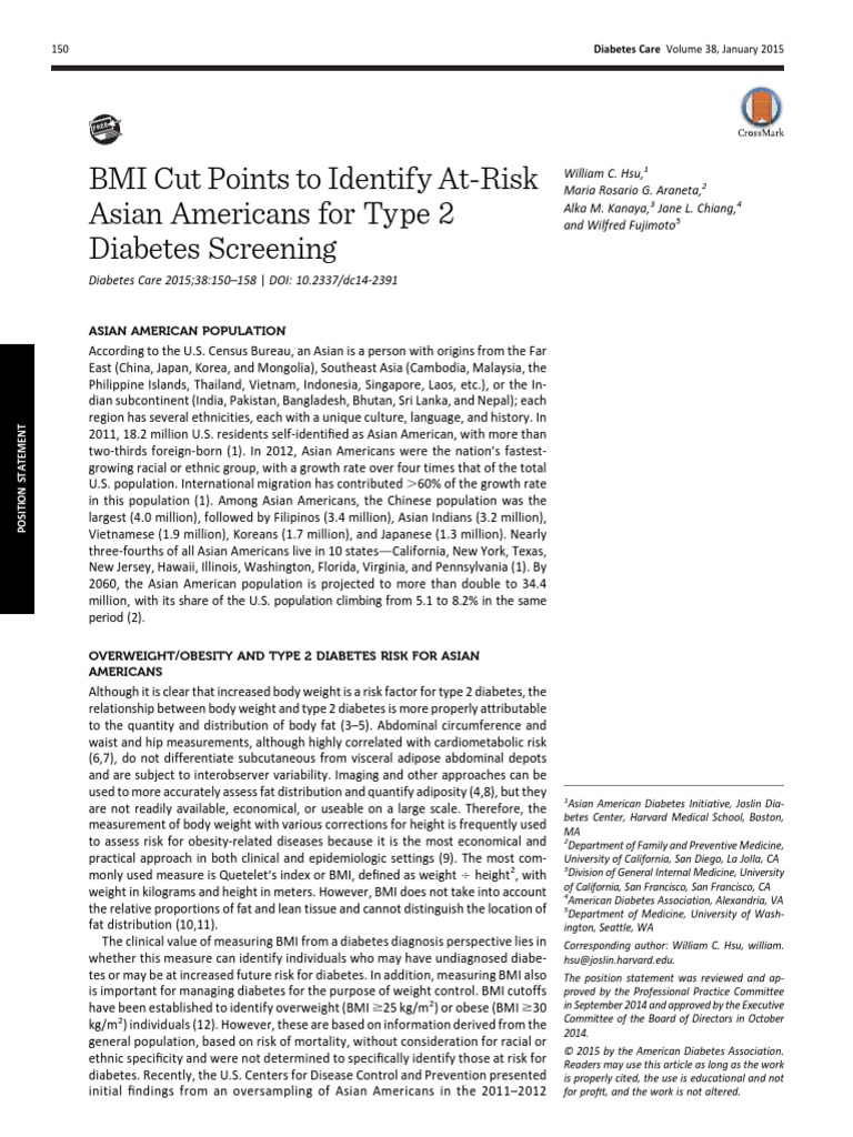 Bmi Cut Points For Screening Asian Americans Diabetes Care