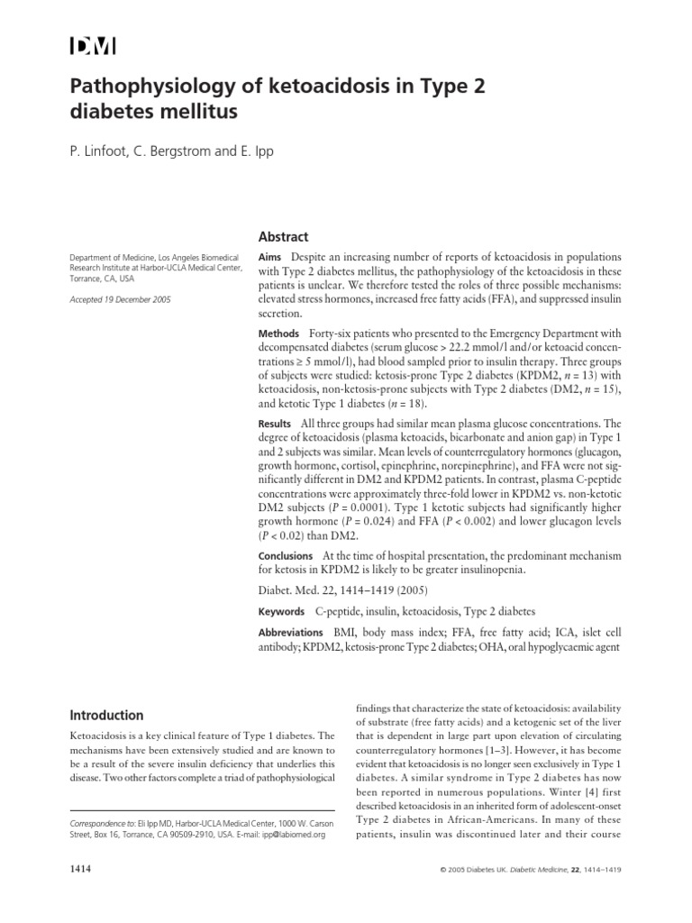 Pathophysiology Of Ketoacidosis In Type 2 Diabetes Mellitus