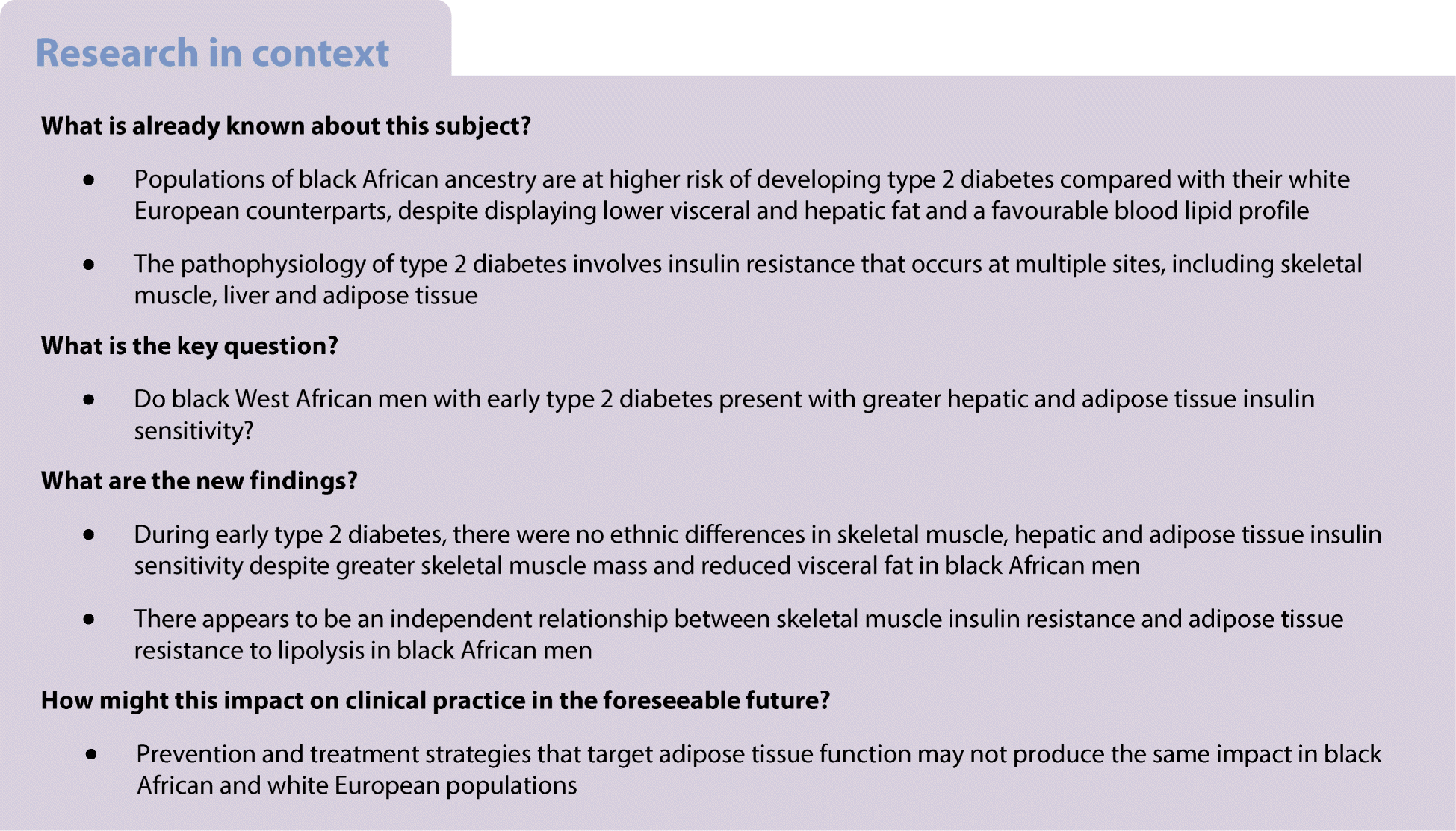 Black African Men With Early Type 2 Diabetes Have Similar