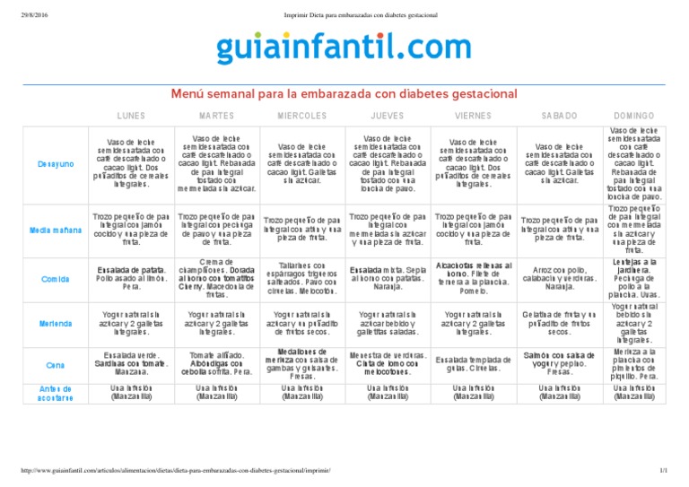 Imprimir Dieta Para Embarazadas Con Diabetes Gestacional
