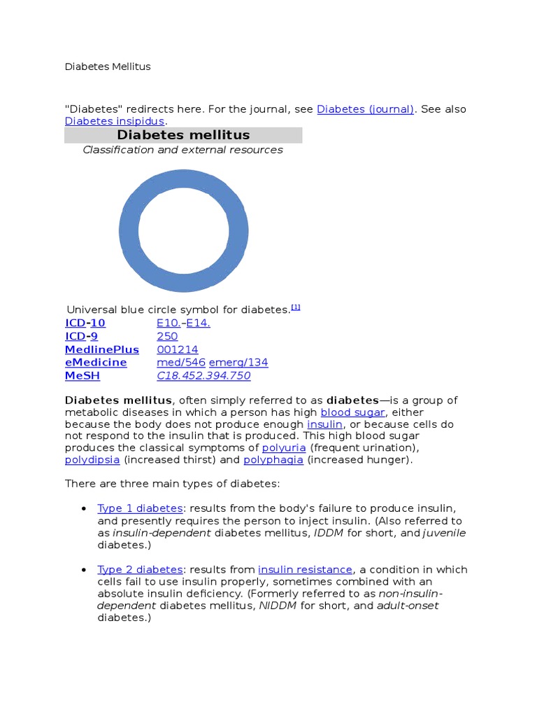 Diabetes Mellitus Diabetes Mellitus Type 1 Diabetes Mellitus