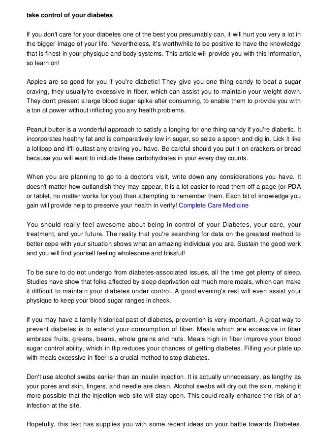 Manage Your Diabetes And Reside Your Life