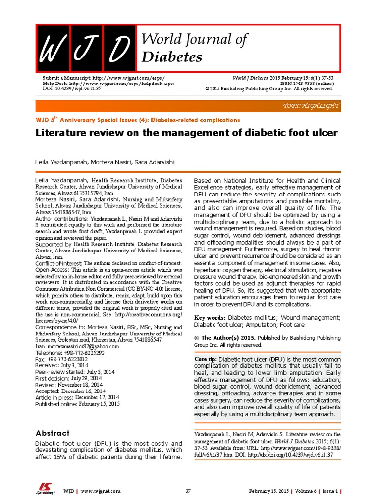 Literature Review Review The Management Of Diabetic Foot