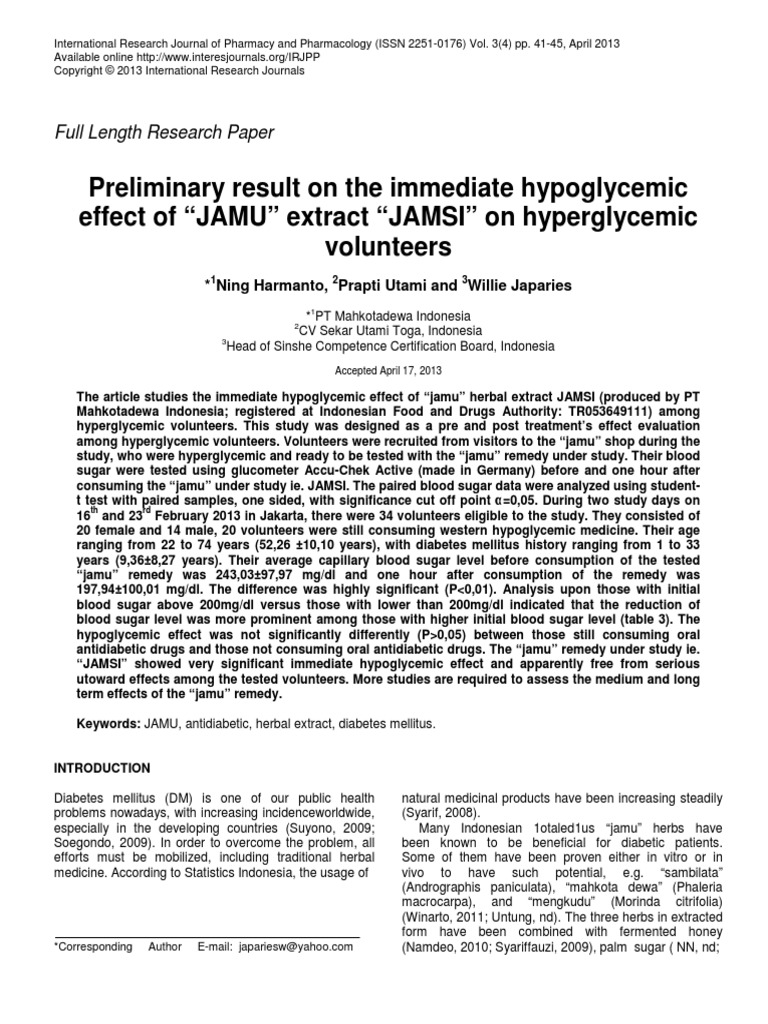 Preliminary Result On The Immediate Hypoglycemic Effect Of